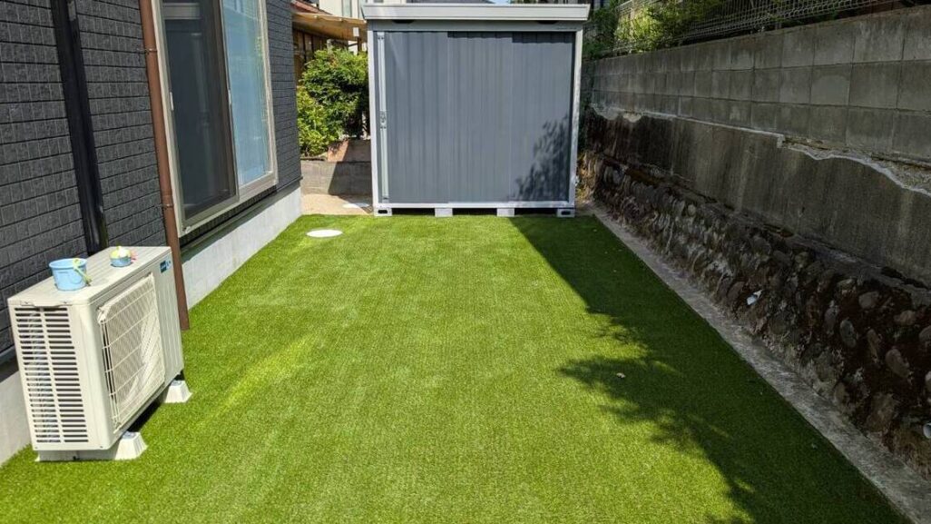 一部を残して植栽を伐採し、土の部分を舗装。壊れていたタイルも新しくしました。